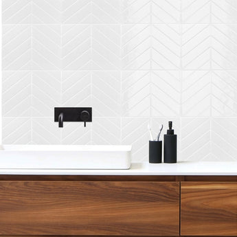 Sold out - Chevron Wall Tile | White with White Grout – 29.0cm (W) x 22.8cm (H) x 1.2mm (T)