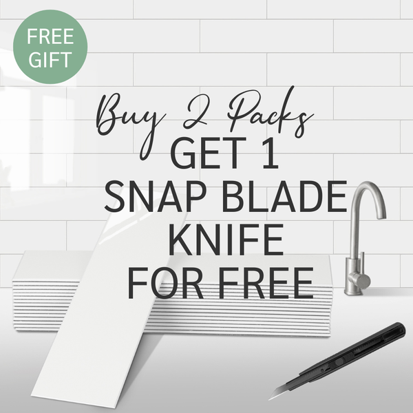 Make your DIY project easier and sharper. When you buy any 2 packs of Premium Composite Tiles whether it is a 10 Pack or a 24 Pack of Flexi Tiles you will receive a snap blade craft knife FREE to help you cut and fit with precision.