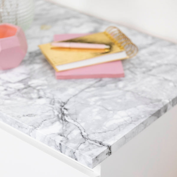 This premium product offers reliable adhesion and longevity on any clean and dry flat surface. Its resilient composition is both water and alcohol resistant, and it has been designed to resist temperatures up to an impressive 75°C. Romeo adhesive vinyl stands out with its elegant white base overlaid with an alluring grey and black marble design. Its glossy finish is easy to wipe clean, making it the ideal choice for stylish, low-maintenance bench tops. This luxurious marble pattern is available in 67.5cm rolls.