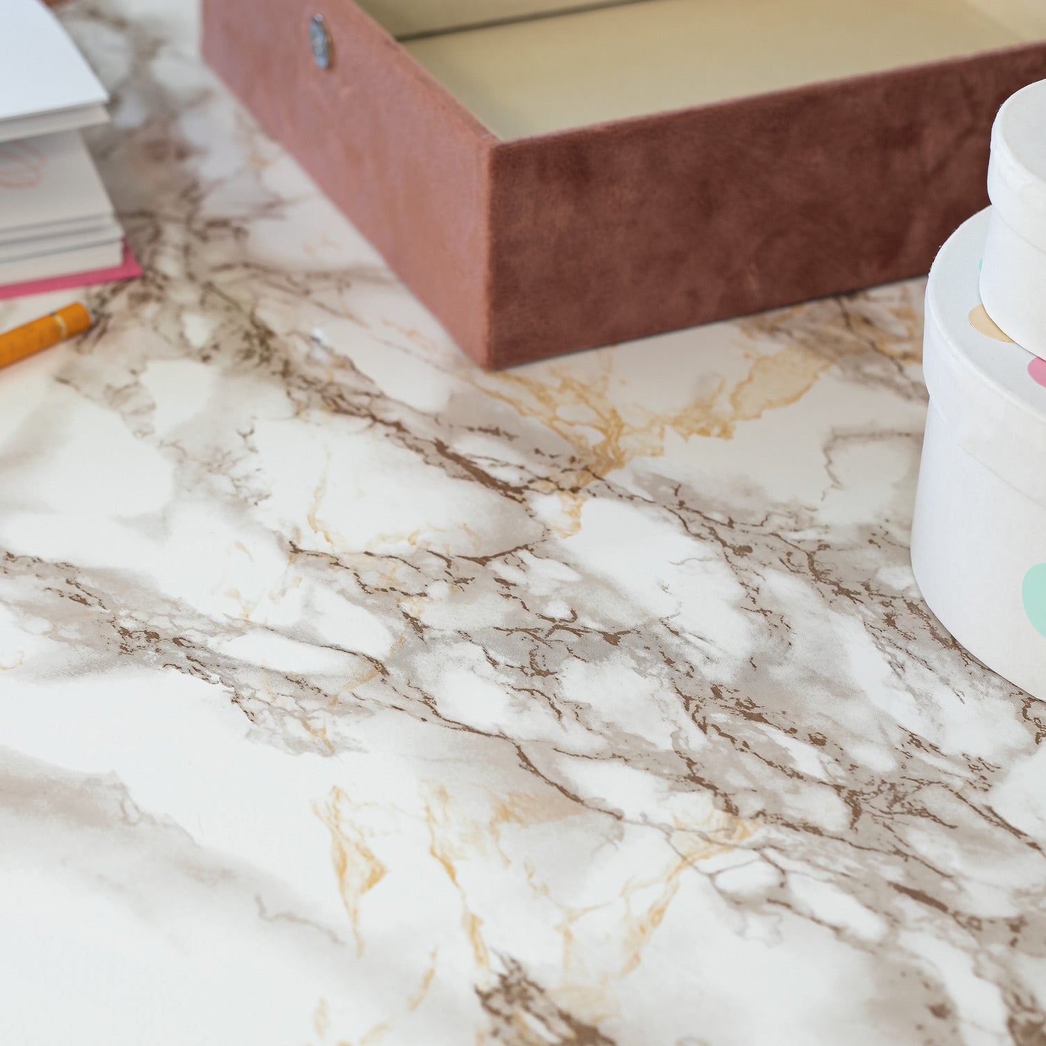Versatile and Easy Application This self-adhesive vinyl is designed for easy, bubble-free application on a variety of smooth, flat surfaces. It perfectly conforms to tabletops, creating a seamless, high-end finish that beautifully complements warm decor tones like wood and velvet. It is an ideal solution for renters wanting a temporary upgrade or homeowners looking for a durable, cost-effective change.