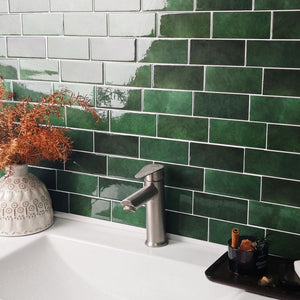 Bring the richness of deep, glossy emerald into your home with our Dark Green Peel and Stick Subway Wall Tiles. This stunning, trend-forward colour combined with a classic brick pattern and clean white grout creates an undeniable feature wall. Looking for that transformative effect? Try the Emerald City Makeover Tiles! Perfect for adding a touch of drama and elegance to backsplashes, vanity areas, or feature areas. These PU Gel Tiles are designed for fast, mess-free installation. They are durable, waterproof, and guaranteed to be an instant conversation starter.