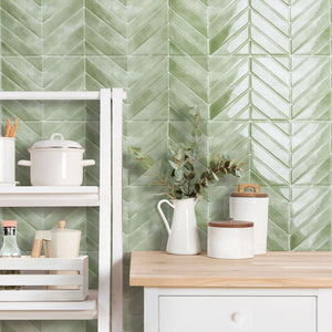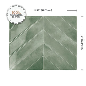 Chevron Solna Green | Self-adhesive 3D Tiles - 29.0cm (W) x 22.8cm (H) x 1.8mm (T)