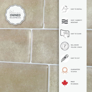 Transform your space with our newest addition to the popular Metro series, Metro Cologne Beige self-adhesive 3D tiles. The earthy beige color adds a touch of warmth and elegance to any room. With easy peel-and-stick application, these subway tiles are a hassle-free way to upgrade your space.