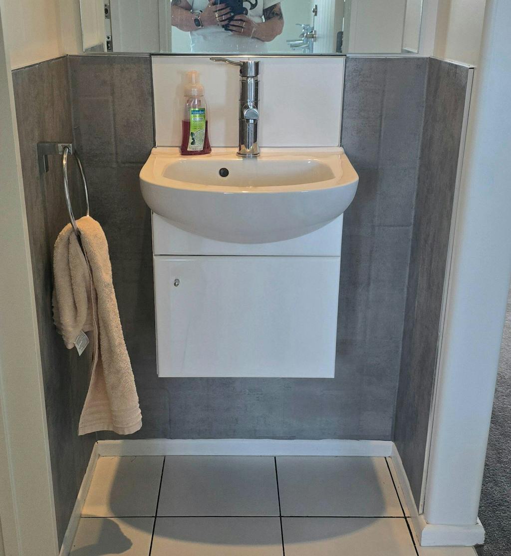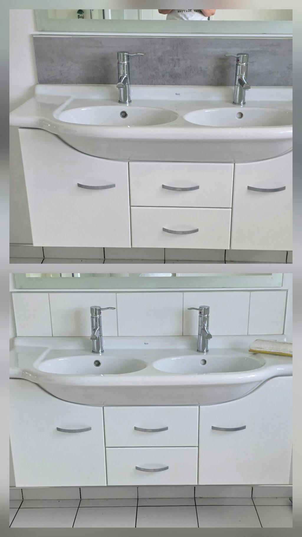 Used this to cover my vanity cupboards and drawers. It does take some skill, but what a result!!! Before was very white. Still need to paint the walls.