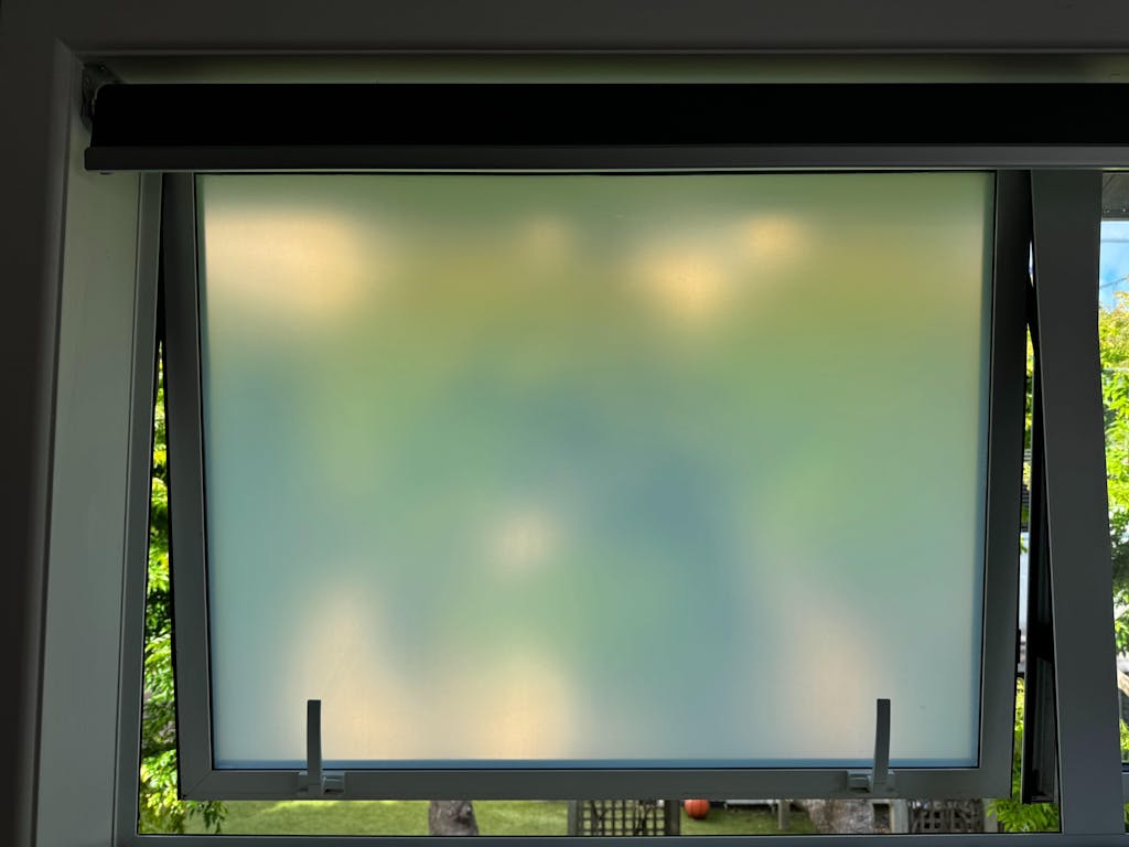 We bought the frost window cover to give our bedrooms privacy from neighbors. It is super easy to be successful with instructions and video. Photos are before and after.